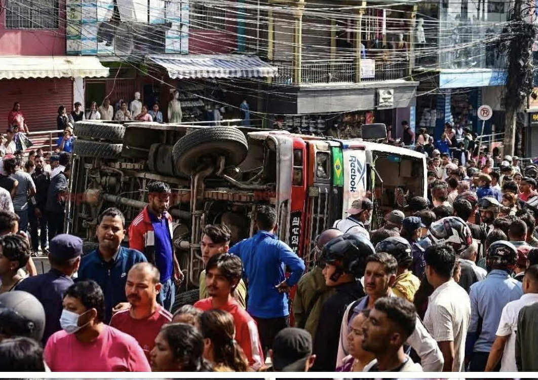 पैयुँटारबाट रत्नपार्क जाँदै गरेको मिनिबस सडकमा पल्टिएको छ