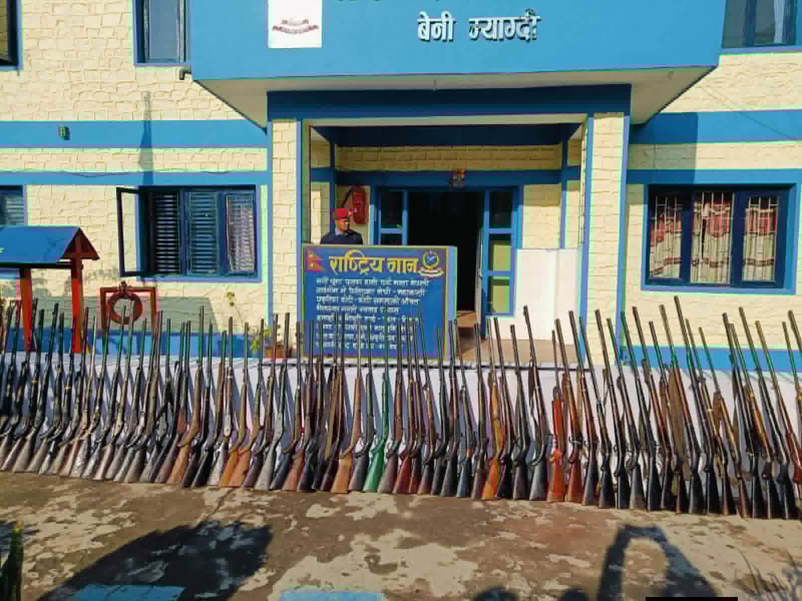 म्याग्दीमा अहिलेसम्मकै ठूलो परिमाणमा अवैध हातहतियार बरामद, ११५ थान भरुवा बन्दुक जफत म्याग्दी प्रहरीले जिल्लाको इतिहासमै सबैभन्दा ठूलो परिमाणमा अवैध हातहतियार बरामद गरेको छ।