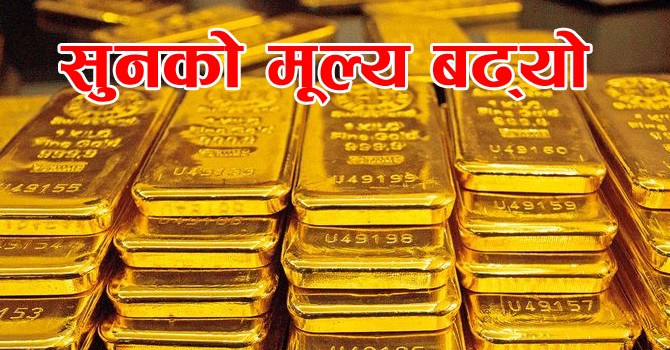 नेपाली बजारमा आज सुनको मूल्य प्रतितोला रु पाँच सयले बढेर रु ९० हजार ३०० कायम गरिएको छ । नेपाल सुनचाँदी व्यवसायी महासङ्घले सार्वजनिक गरेको तथ्याङ्कानुसार छापावाल सुनको मूल्य प्रतितोला रु ९० हजार ३०० तोकिएको हो । छापावाल सुन सोमबार प्रतितोला रु ८९ हजारमा ८०० मा कारोबार भएको थियो ।