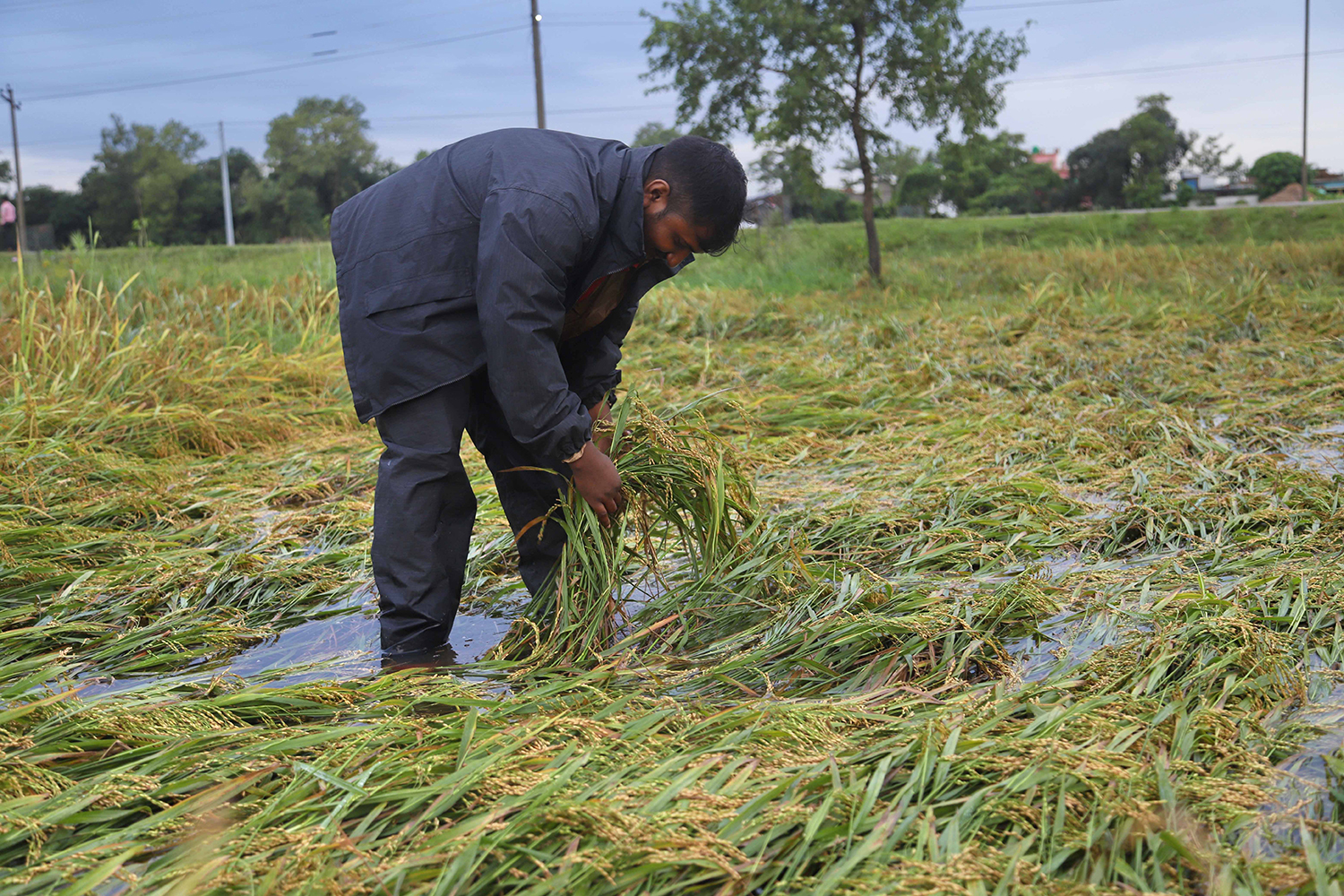 “हावाहुरीसँगै आएको पानीले पाकेको धान सबै डुबाएर ठूलो नोक्सानी पुगेको छ”, थापाले भन्नुभयो, “पानी परिरहेकाले धान स्याहार्न पाइएको छैन, ढलेको धान कुहिन थालिसकेको छ । बीउ जोगाउन पनि गाह्रो हुने भयो ।”